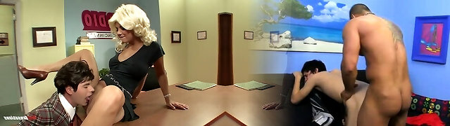 05:00Milf in blond wig Andy San Dimas takes a big trouser snake in her mouth and coochie